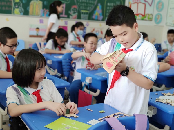 6月1日這一天,校園布置充滿童趣,彌漫著歡樂的氣氛,笑容洋溢在每個(gè)孩子天真稚嫩的臉上。升旗儀式結(jié)束后,令人期待的是一系列的體育娛樂活動(dòng),每一項(xiàng)游戲活動(dòng)前都人頭攢動(dòng),每一項(xiàng)體育活動(dòng)都激情澎湃,每一項(xiàng)文娛活動(dòng)都才藝飛揚(yáng)???,雙腳夾球投籃游戲,考驗(yàn)的是學(xué)生的平衡能力和彈跳力,只見雙腳夾緊球,使勁向上一蹦,球就投進(jìn)籃子里,孩子們高興得手舞足蹈;盲人貼鼻子游戲,誤打誤撞,讓人忍俊不禁。看,運(yùn)動(dòng)場(chǎng)上,往返接力跑,同學(xué)們你追我趕,考驗(yàn)團(tuán)隊(duì)協(xié)作能力;齊心協(xié)力滾籃球,同學(xué)們相互配合,共度“難關(guān)”;輕松跳大繩活動(dòng),同學(xué)們宛如穿梭的燕子;籃球場(chǎng)上,高年級(jí)使出渾身解數(shù),呈現(xiàn)出一場(chǎng)場(chǎng)精彩紛呈的團(tuán)體籃球賽。看,班級(jí)文藝活動(dòng),同學(xué)們有的高歌一曲,盡情抒發(fā)內(nèi)心的歡愉;有的玩轉(zhuǎn)魔方,一展身手;有的參加樂趣拼裝,腦力與手工結(jié)合,創(chuàng)意十足?;顒?dòng)充分展示了華附小學(xué)子多才多藝、全面發(fā)展、積極向上的陽(yáng)光氣質(zhì),活動(dòng)熱度不斷推向高潮?;顒?dòng)尾聲的“送禮物”環(huán)節(jié)更是為活動(dòng)畫上圓滿的句號(hào)。