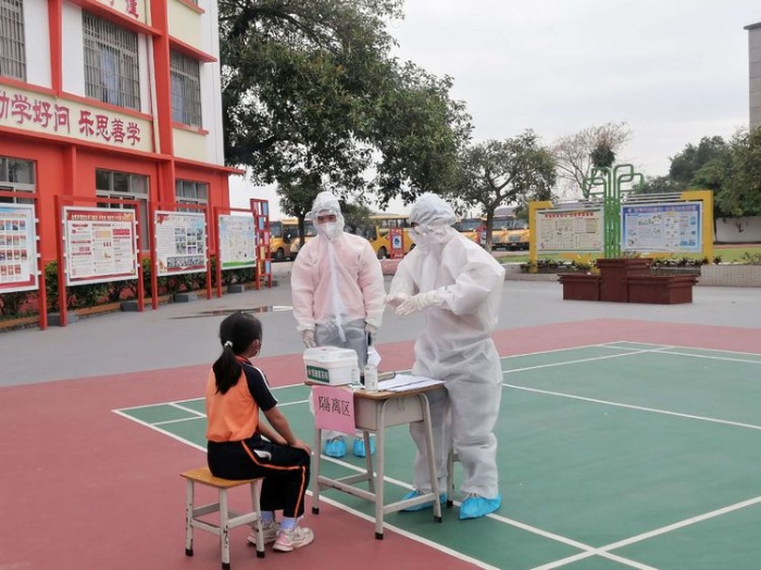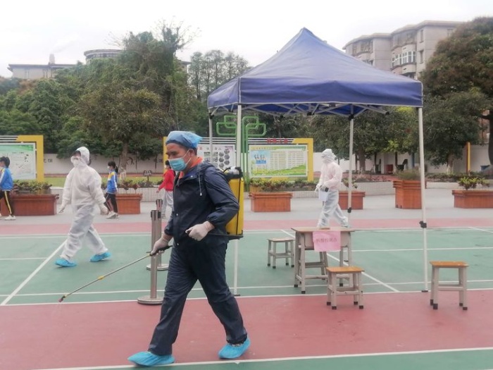 本次演練假設(shè)前提背景在疫情低風險地區(qū),雛鷹學校接到通報,學生王某為新冠肺炎病例的密切接觸者,經(jīng)摸查,王某的密切接觸者共有100人。發(fā)生疫情后,學校啟動應(yīng)急預(yù)案,醫(yī)療保障組、消毒組、安全后勤保障組、信息聯(lián)絡(luò)組及宣傳和心理疏導(dǎo)組做好應(yīng)急響應(yīng)準備。