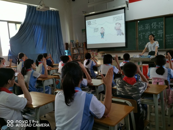 課堂中,老師們向同學(xué)們闡述了什么是性侵犯,如何防范性侵害,遭遇性侵犯怎么辦?同學(xué)們?cè)谡n堂上認(rèn)真傾聽,踴躍舉手發(fā)言,課堂氣氛活躍。