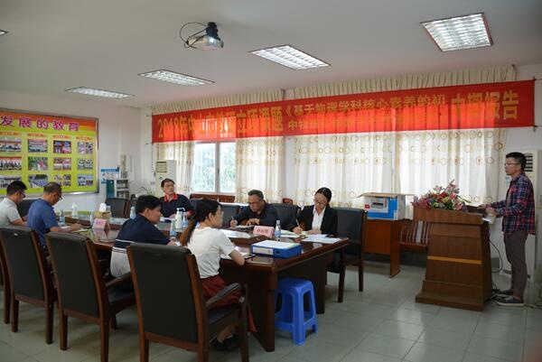 11月6日下午,由黃太軍老師主持的中山市教育科研立項(xiàng)課題《基于物理學(xué)科核心素養(yǎng)的初中物理實(shí)驗(yàn)教學(xué)的策略研究》中期檢查報(bào)告會(huì)在黃圃鎮(zhèn)馬新初級(jí)中學(xué)接待室舉行。中山市教研室中學(xué)物理教研員朱小青老師、馬新中學(xué)教導(dǎo)處吳宗江副校長(zhǎng)、劉偉華主任以及全體物理課組的全體成員參加本次會(huì)議。會(huì)議由林麗暉老師主持。