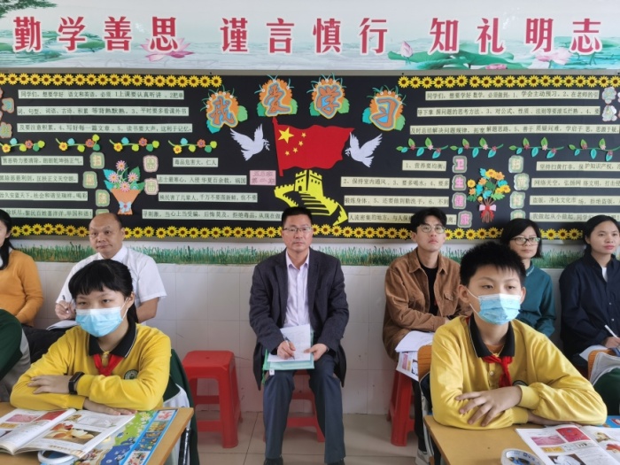 第三個環(huán)節(jié)是深入課堂聽課,評估組一行在學校行政、科級組長的陪同下,前往各年級不同班級進行現(xiàn)場聽課,包含的科目有語文、數(shù)學、英語、美術、音樂。課堂上,老師們充分利用“對分課堂”開展教學,對學生循循善誘,學生們積極思考,爭先恐后回答問題。