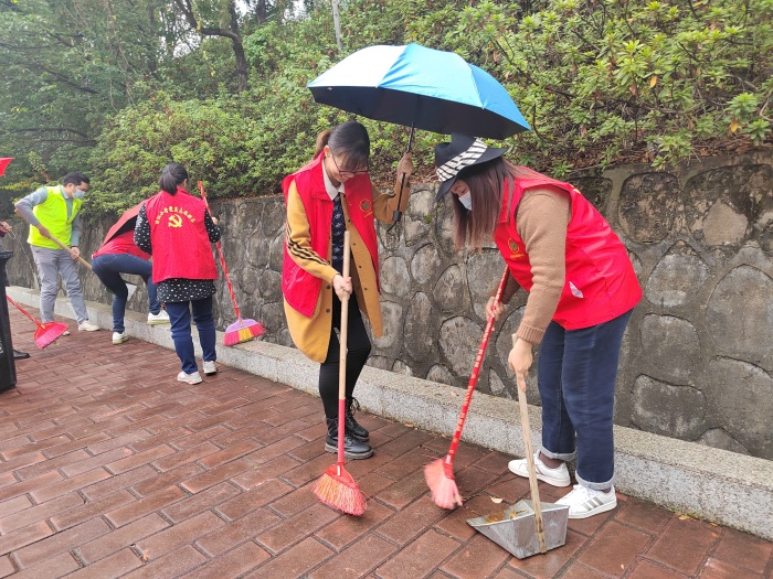 黨員教師不怕臟、不怕累,以身作則,身穿紅色馬甲帶領學生,一起手拿掃帚、鐵鍬等清潔工具,清理校園周邊的垃圾,不留一個衛(wèi)生死角。