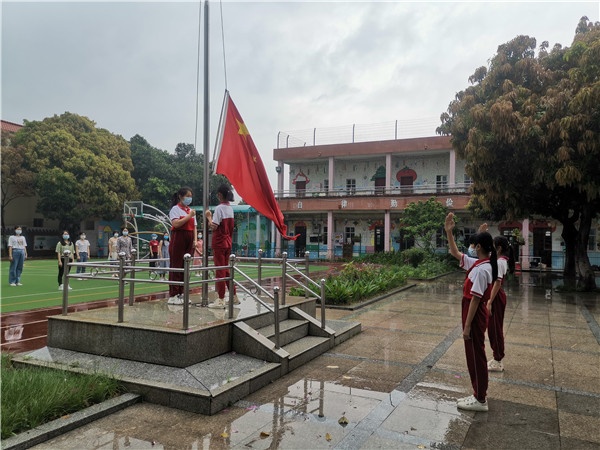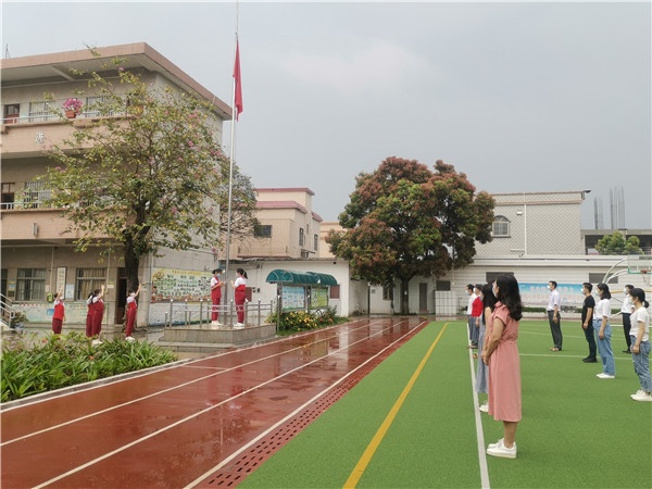 雨停了,升旗手各就各位,全體老師和學(xué)生們進(jìn)行了莊嚴(yán)肅穆的升旗儀式,伴隨著激昂的國(guó)歌,回憶著這次為疫情奉獻(xiàn)的英雄們,感恩他們,也感恩祖國(guó),才有今天的平安歸校。