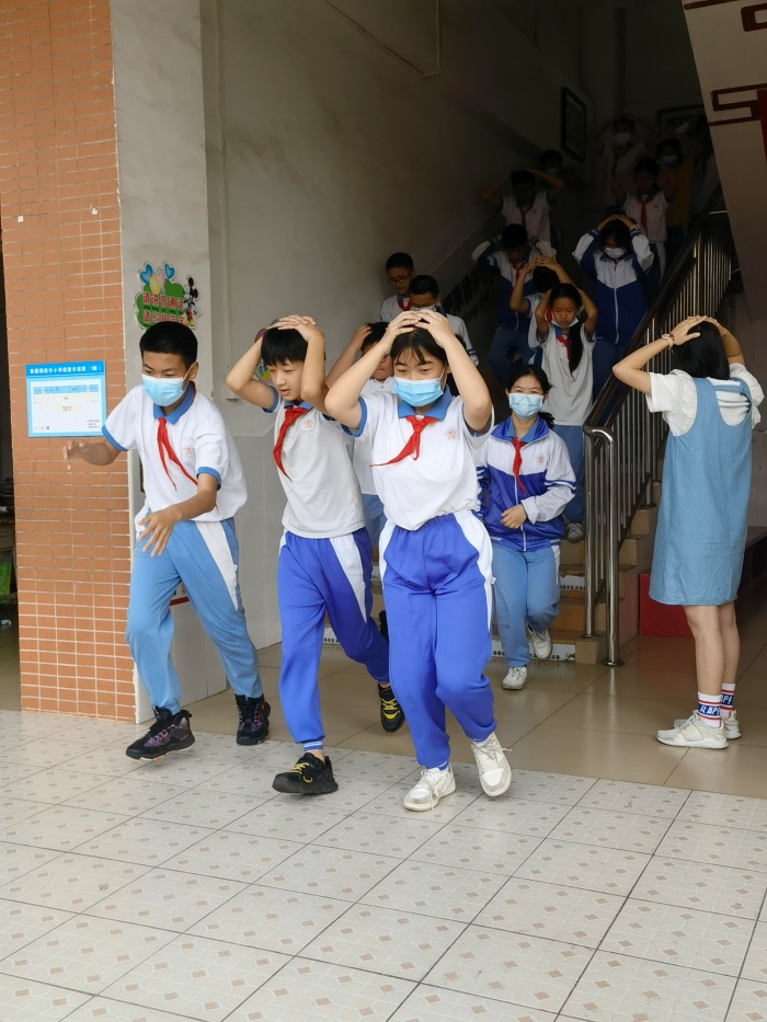 當(dāng)警報(bào)響起,老師馬上組織學(xué)生雙手抱頭、彎著身子,有序從各安全通道撤離。短短2分多鐘,全體師生安全撤離到教學(xué)樓前空曠的操場(chǎng)上。隨后馮校長(zhǎng)對(duì)此防震演習(xí)情況作出總結(jié),并向?qū)W生宣講了應(yīng)急避震和安全疏散的方法。以最近廣東地區(qū)發(fā)生的4.1級(jí)地震為例,叮囑全校師生加強(qiáng)防震演練的重要性,珍愛生命。
