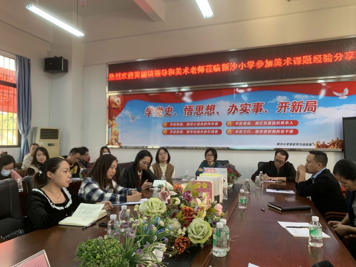新沙小學(xué)冼鳳蘭主任主持本次活動。葉景乾校長為活動致歡迎辭,葉校長非常感謝黃圃鎮(zhèn)美術(shù)教研組給予學(xué)校作為活動承辦單位的機會,高度贊揚課題主持人的科研能力和課題研究成果。
