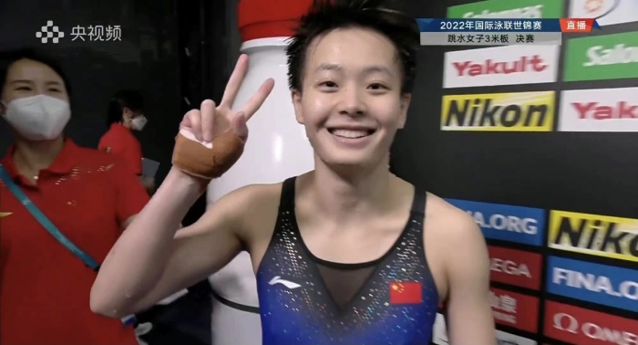 在2022年國(guó)際泳聯(lián)世錦賽跳水女子3米板的決賽上,我校輸送的跳水運(yùn)動(dòng)員陳藝文發(fā)揮出色,以五跳總分366.90分,奪得女子3米板跳水冠軍,這也是中山隊(duì)員在本屆國(guó)際泳聯(lián)世錦賽上的第二枚金牌。祝賀陳藝文!