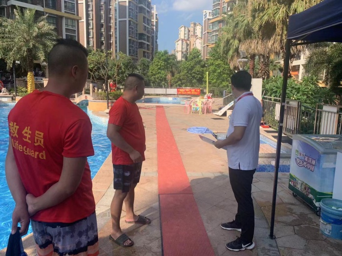 檢查二組則來到鎮(zhèn)內(nèi)部分泳池進(jìn)行檢查,重點(diǎn)查看泳池經(jīng)營單位的防溺水預(yù)案及安全防護(hù)設(shè)施、防溺水警示標(biāo)語、救生員持證上崗和救生設(shè)施設(shè)置等情況。檢查組要求各游泳經(jīng)營場所要牢固樹立安全意識,提高救生技能,注重安全防范細(xì)節(jié),做到“只要泳池有人,救生員必須在位”,確保不發(fā)生溺水事故。