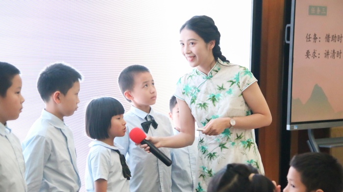 課堂展示環(huán)節(jié),由12位來自各鎮(zhèn)街的青年骨干教師帶來小學(xué)語文低、中、高三個(gè)學(xué)段,包含童話、神話、散文、小古文等文體課例共12節(jié)。老師們以學(xué)習(xí)任務(wù)群為主要抓手,以輸出驅(qū)動(dòng)理念為核心,創(chuàng)設(shè)學(xué)習(xí)情境,設(shè)計(jì)一個(gè)個(gè)環(huán)節(jié)緊湊的學(xué)習(xí)任務(wù),讓學(xué)生在課堂中真正地“動(dòng)起來”、“學(xué)起來”。