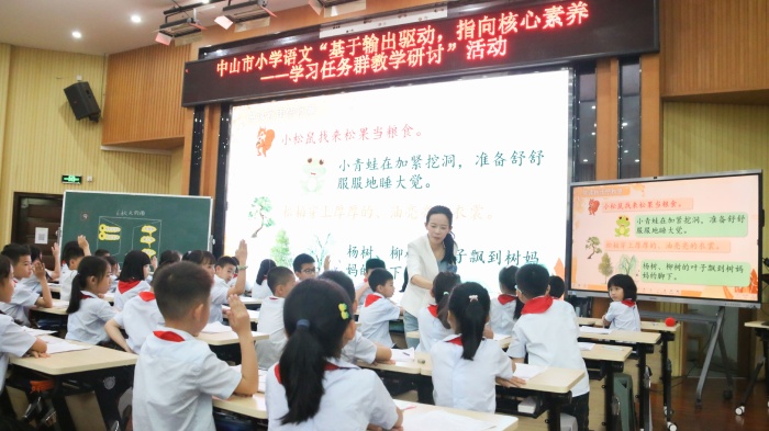 為落實(shí)《義務(wù)教育語文課程標(biāo)準(zhǔn) (2022 年版)》提出的教學(xué)理念,探索小學(xué)語文學(xué)習(xí)任務(wù)群設(shè)計(jì)在課堂教學(xué)中的有效、合理運(yùn)用,4月24日-4月25日,中山市教育教學(xué)研究室在東區(qū)朗晴小學(xué)舉行中山市小學(xué)語文“基于輸出驅(qū)動(dòng),指向核心素養(yǎng)一一學(xué)習(xí)任務(wù)群教學(xué)研討”活動(dòng)。中山市教育教學(xué)研究室小學(xué)語文教研員梁雪菊老師、中山市小學(xué)語文中心教研組成員、各鎮(zhèn)街小學(xué)語文中心教研組長(zhǎng)及各鎮(zhèn)街小學(xué)語文骨干教師400多人出席了本次活動(dòng)。