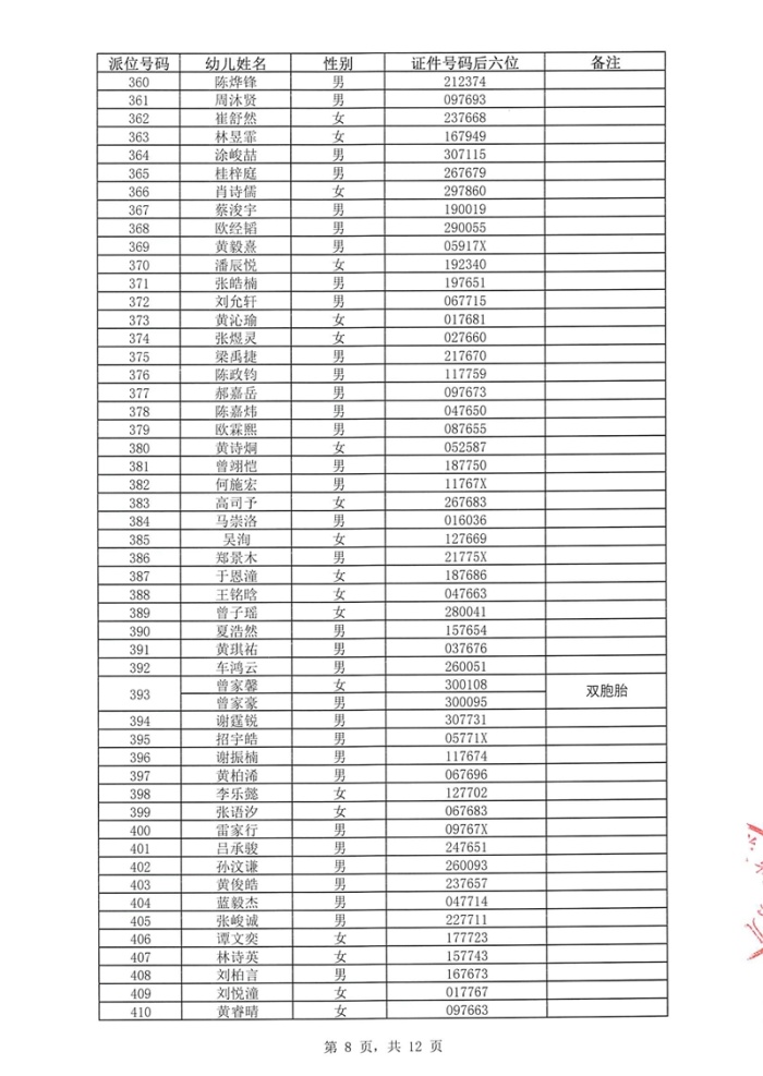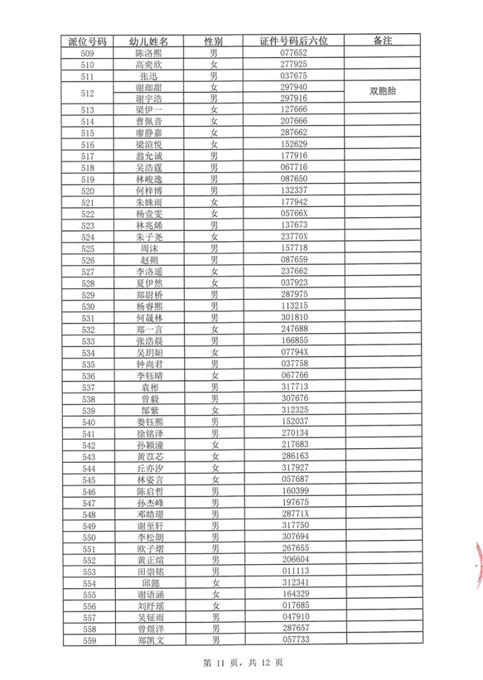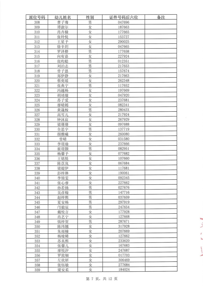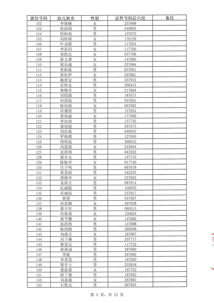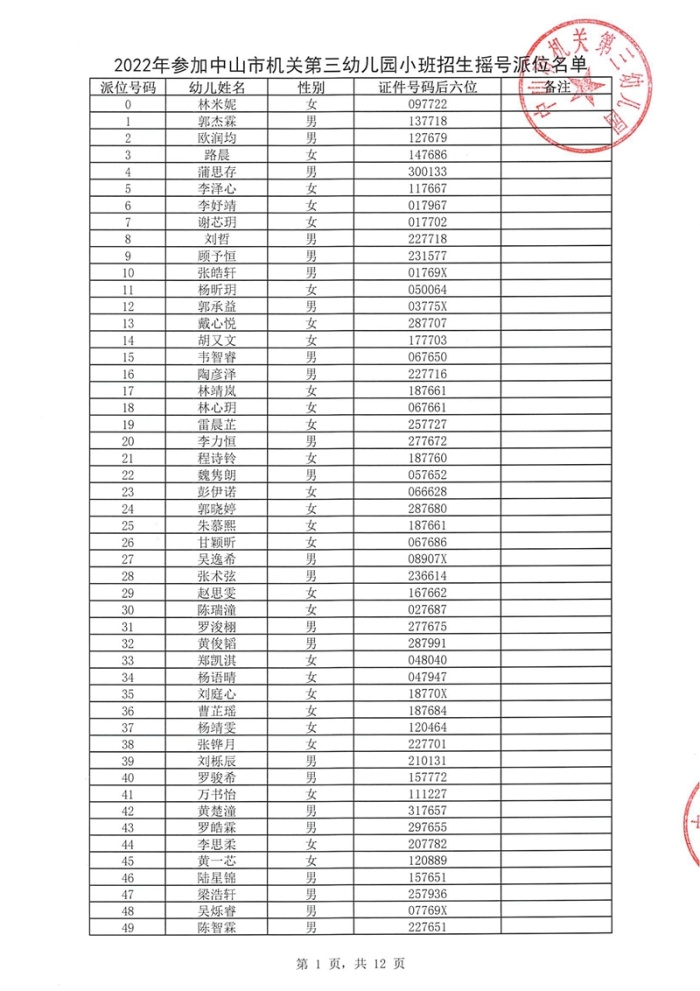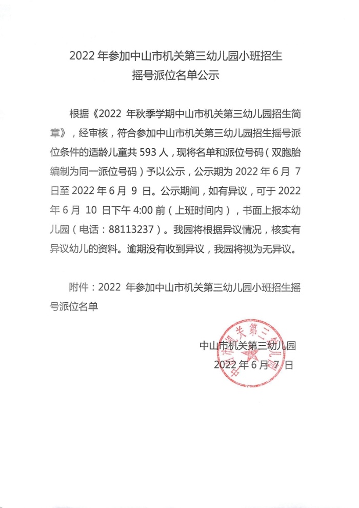 2022年參加中山市機關(guān)第三幼兒園小班招生搖號派位名單公示