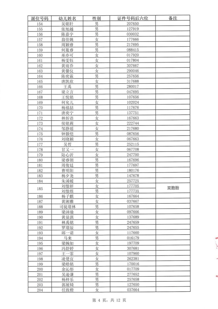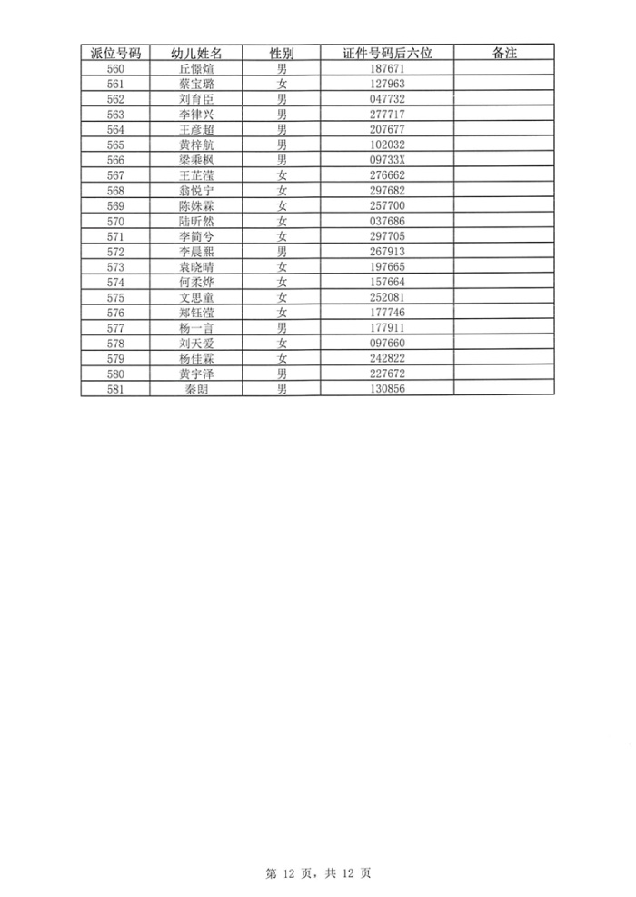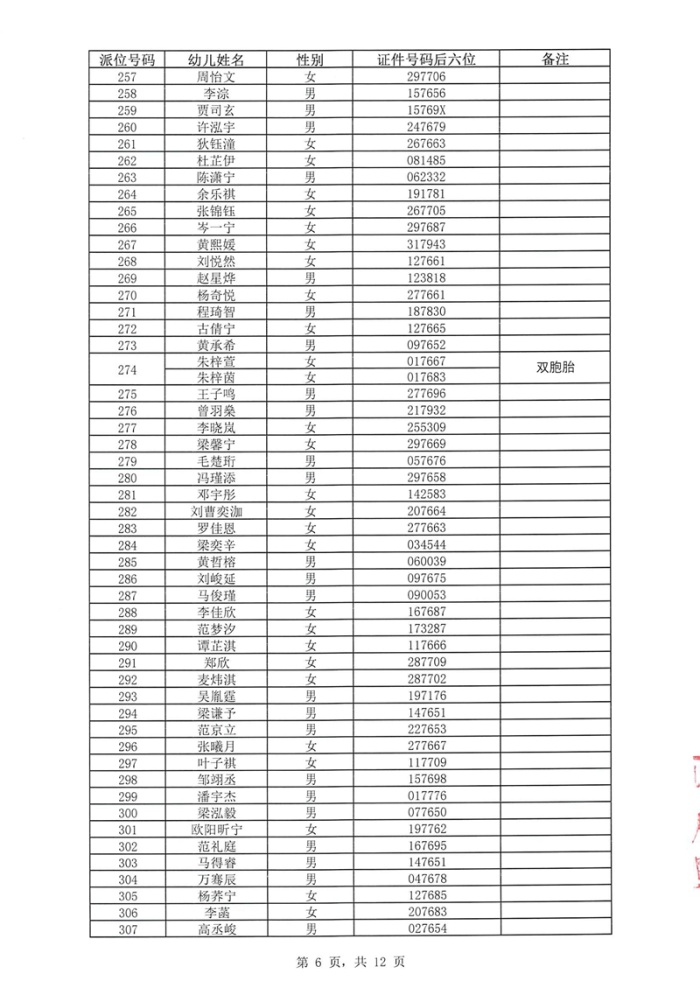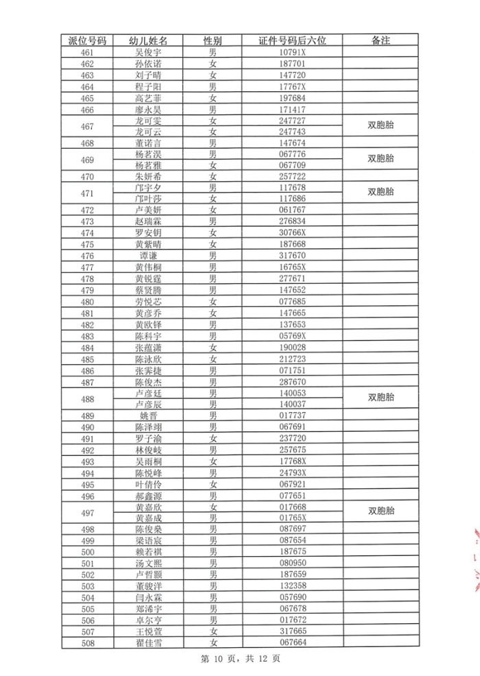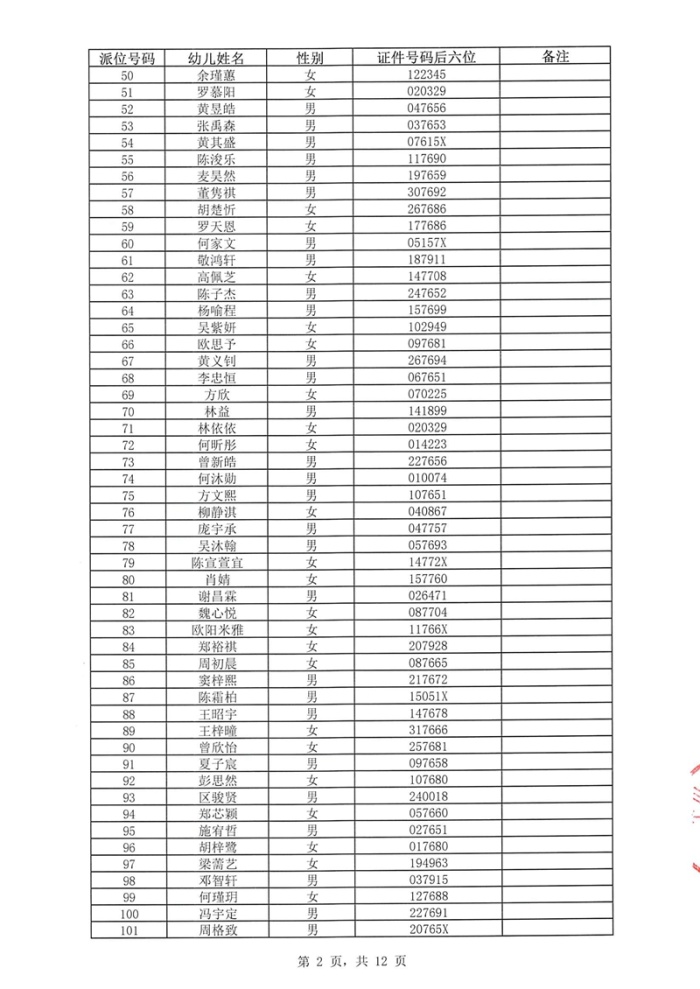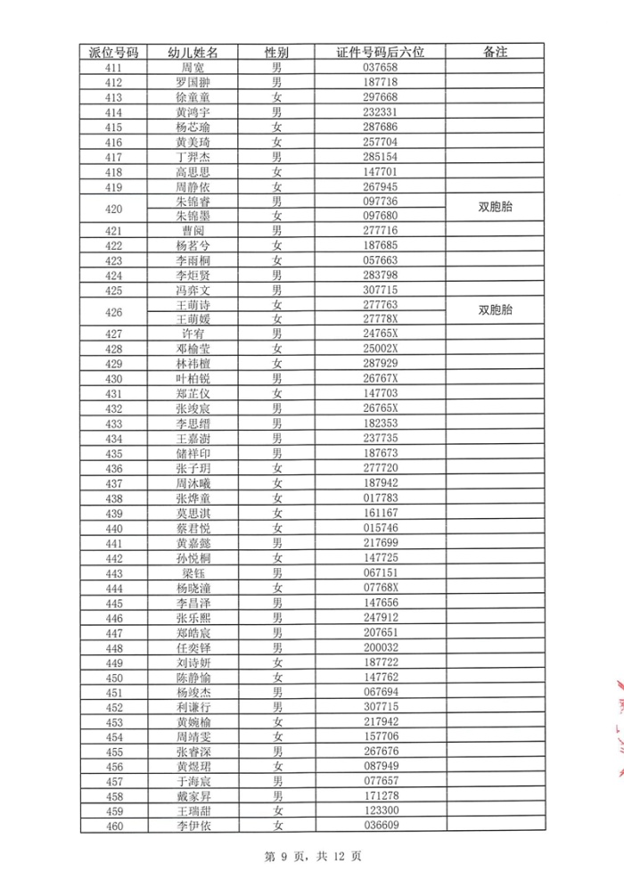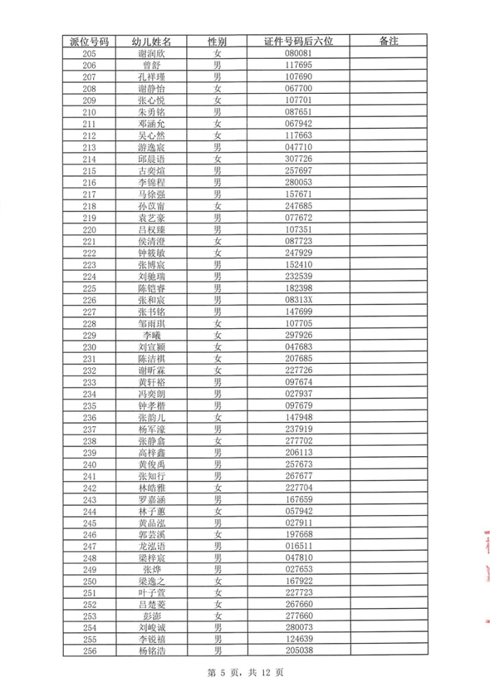 2022年參加中山市機關(guān)第三幼兒園小班招生搖號派位名單公示