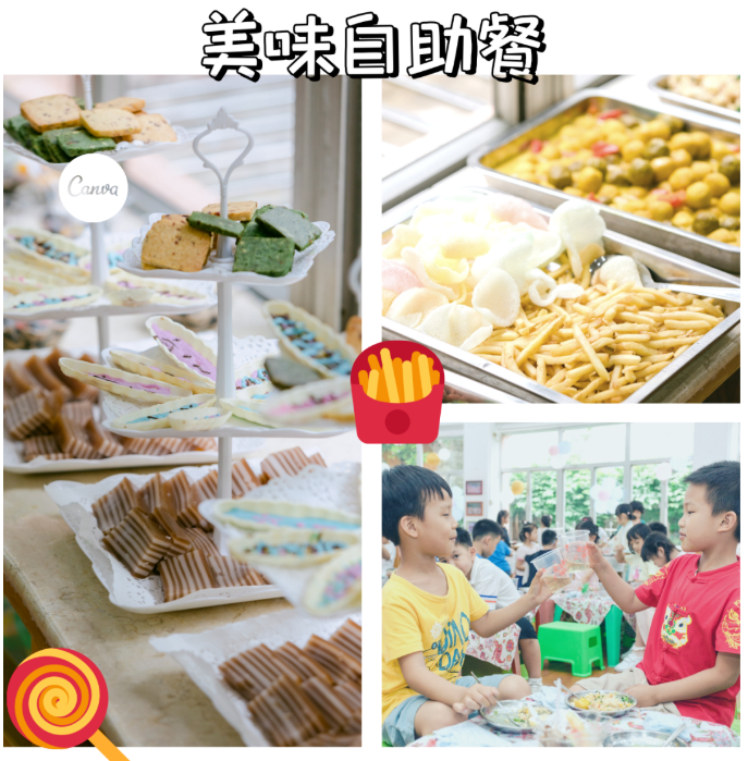 歡快的節(jié)日里怎么能少得了幼兒園精心為我們準(zhǔn)備的節(jié)日大餐。游園活動(dòng)結(jié)束后,我們來到“自助餐廳”,精美的餐具上擺滿了我們的最愛:炒飯、雞翅、蝦片、薯?xiàng)l.......我們有序自主地挑選自己喜歡的食物,一起分享豐盛美食。