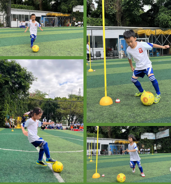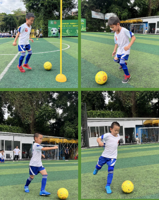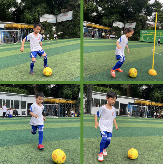 熱身游戲環(huán)節(jié),螞蟻搬豆、鈴兒響叮當(dāng)、小小搬運工、奪寶接力賽四個項目考驗著足球小將們的運球和控球能力。瞧,小將們精神抖擻、勢在必得!一個多月的刻苦訓(xùn)練,讓他們動作敏捷連貫,足球在他們腳下聽話地迅速滾動,小小的熱身項目可難不倒他們!