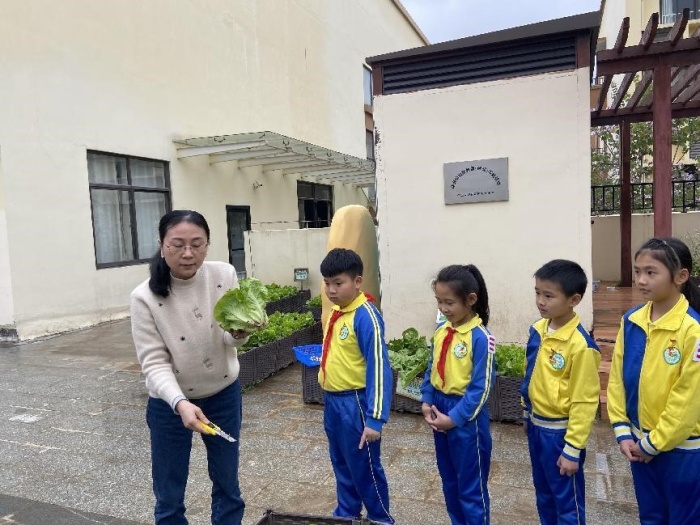 開墾一片地,收獲滿四季。經(jīng)過同學(xué)們上一學(xué)期的用心澆灌、除草、施肥,這天下午,終于迎來了一次大豐收。明媚的陽光映照著孩子們燦爛的笑臉,油麥菜、生菜、芹菜、小番茄你擠我碰,爭著搶著讓同學(xué)們采摘。采摘活動開始前,鄧龍主任先對同學(xué)們進行了勞動安全教育,強調(diào)了采摘過程中的注意事項,并耐心地講解了不同蔬菜采摘的技巧和方法。接著,踏著清爽的春風(fēng),尋著豐碩的果香,“小菜農(nóng)”們在勞動實踐基地忙開了,摘生菜、拔蔥蒜、采西紅柿……每一位同學(xué)都親身體驗到豐收的喜悅,那歡快的笑聲響徹校園。