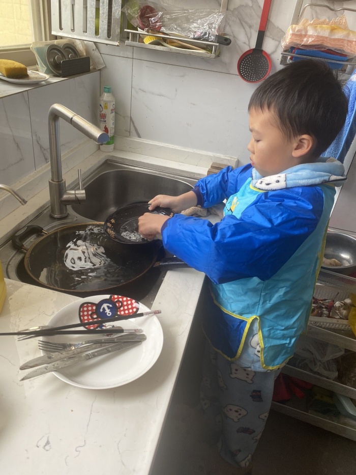 瞧,一、二年級的小同學(xué),人小但勞動熱情卻很高,有些同學(xué)幫家里掃掃地,擦擦桌子;有些同學(xué)自己疊衣服,把小衣柜整理得井井有條......三、四年級的同學(xué)們勞動的本領(lǐng)就更大了??矗行┩瑢W(xué)自己打掃好房間衛(wèi)生,收拾得干干凈凈,整整齊齊;還有些同學(xué)吃過晚飯主動幫媽媽洗碗、擦桌子、拖地......五、六年級的大哥哥大姐姐們學(xué)著爸爸媽媽的樣子做起了小廚師,游走在廚房這片小天地,樂此不疲,一道道美味佳肴新鮮出爐,看得人直流口水呢......勞動強(qiáng)度雖然不大,卻極大地減輕了父母的負(fù)擔(dān),孩子們也從中享受到了勞動的成果和喜悅。