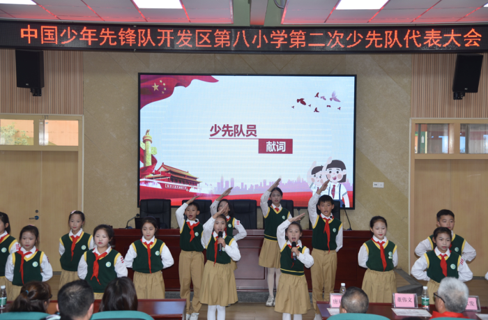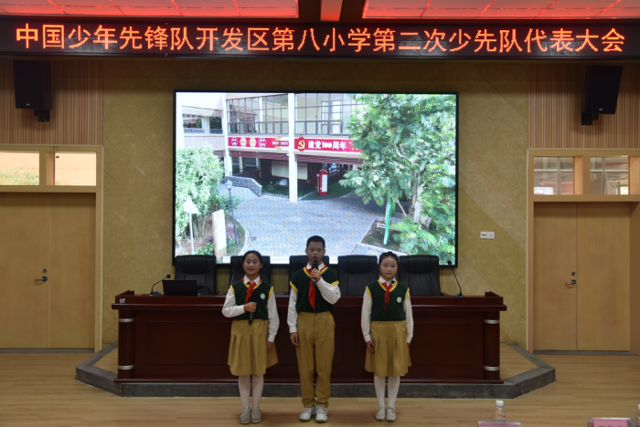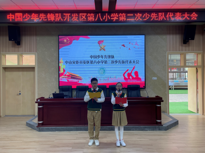 為深入貫徹落實(shí)習(xí)近平總書(shū)記關(guān)于少先隊(duì)工作的重要論述和全國(guó)第八次少代會(huì)精神,進(jìn)一步加強(qiáng)學(xué)校少先隊(duì)的組織建設(shè),增強(qiáng)少先隊(duì)員的光榮感和歸屬感,12月24日下午,開(kāi)發(fā)區(qū)第八小學(xué)少工委在學(xué)校報(bào)告廳隆重召開(kāi)“請(qǐng)黨放心 強(qiáng)國(guó)有我”——火炬八小第二次少先隊(duì)代表大會(huì)。