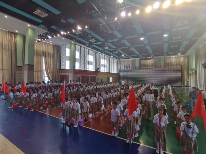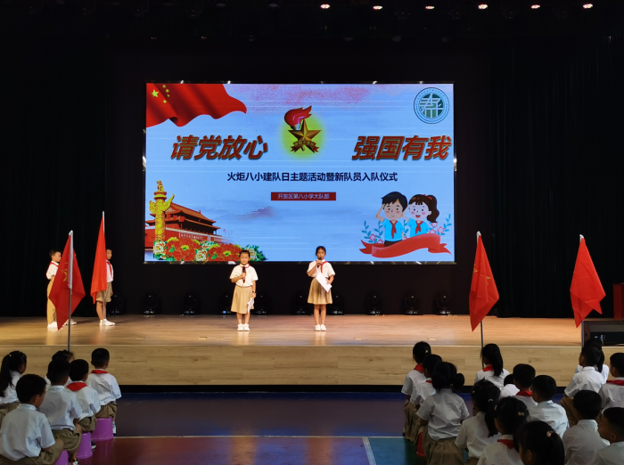 有一種顏色, 飄揚在心中永不褪色, 那是紅領(lǐng)巾的顏色;有一種驕傲, 令人激動不已, 那是戴上紅領(lǐng)巾的光榮。為熱烈慶祝中國少年先鋒隊建隊72周年,引導(dǎo)全校少先隊員聽黨話、跟黨走,切實增強少先隊員光榮感和組織歸屬感,賡續(xù)紅色血脈,傳承紅色基因,10月11日下午,火炬八小在體藝館舉行建隊72周年主題隊日活動暨入隊儀式。