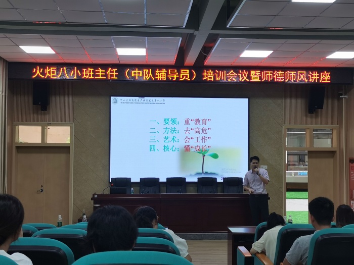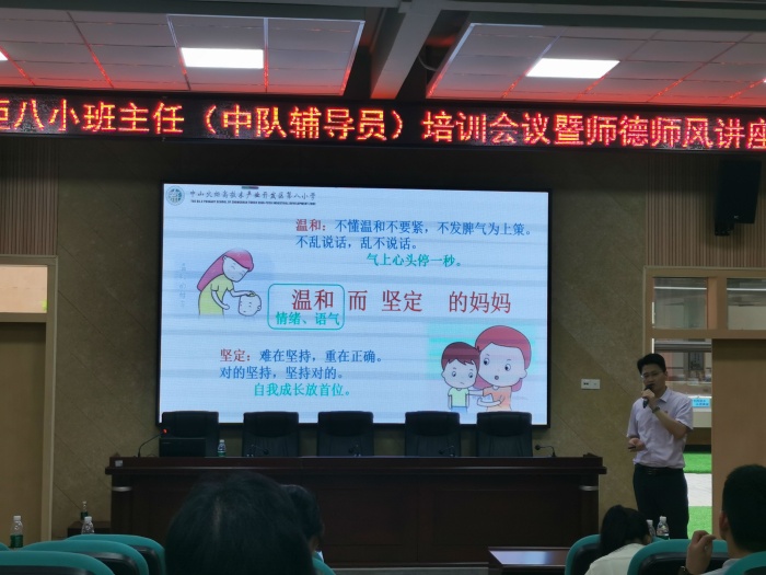 “師也者,教之以事而喻諸德也”,為加強班主任隊伍建設(shè),落實立德樹人根本任務(wù),建立良好的家校關(guān)系,家校共育,共促學(xué)生成長,火炬八小于8月28日下午在報告廳開展德育專題講座暨班主任(中隊輔導(dǎo)員)培訓(xùn)會議。本次會議由學(xué)生服務(wù)室鄧龍主任主持,特邀請了中山市優(yōu)秀德育干部、中山市班主任專業(yè)發(fā)展研究中心成員、中山市家校共育研究中心講師團副團長、火炬區(qū)第四小學(xué)楊勇強副校長為全體班主任和新教師開展講座。