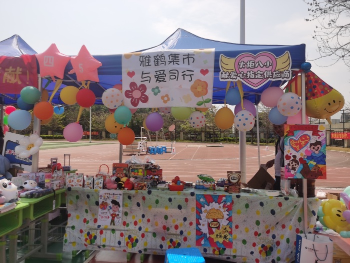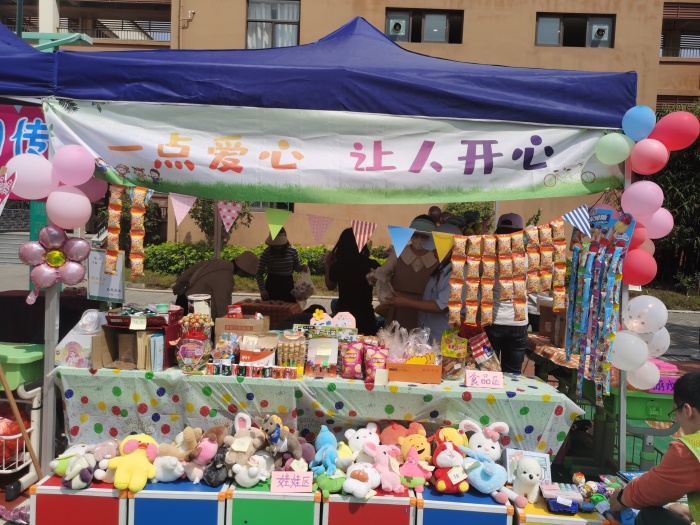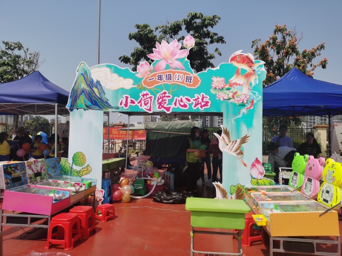 中午12點(diǎn)30分按照提前劃分好的位置,各班家委有序前往自己的攤位,他們拿出精美的廣告牌,擺上細(xì)心挑選的物品,琳瑯滿目的商品、充滿愛(ài)心的廣告標(biāo)語(yǔ),把各個(gè)攤位裝點(diǎn)得別具一格,分外靚眼。