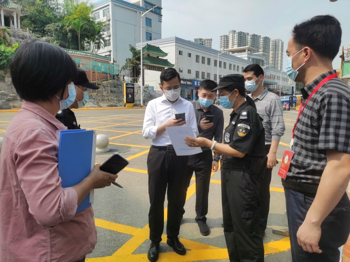 不逾越校園疫情防控防線,胡楠副書記和張亮副局長(zhǎng)先向保安員提供綠色粵康碼和行程卡才進(jìn)入校園。在蔡長(zhǎng)青校長(zhǎng)的陪同下,胡楠副書記首先詢問學(xué)校教職工及學(xué)生總?cè)藬?shù),然后詳細(xì)了解疫情下學(xué)校具體開展的常態(tài)化防疫工作以及制定的防疫措施,并就每?jī)蓚€(gè)星期開展一次的師生健康信息的收集、運(yùn)用與管理隨機(jī)抽查了幾位班主任的工作情況。后勤部陳玉苗主任如實(shí)匯報(bào)全校教職工及學(xué)生新冠疫苗的接種情況以及第三針疫苗接種的具體數(shù)據(jù)。另外,隨著本周疫情的嚴(yán)重化,學(xué)校要求學(xué)生進(jìn)入校園必須佩戴口罩,對(duì)忘戴口罩的學(xué)生由保安員發(fā)放。除此,學(xué)校大課間、早操、圖書室等密集活動(dòng)已暫停。