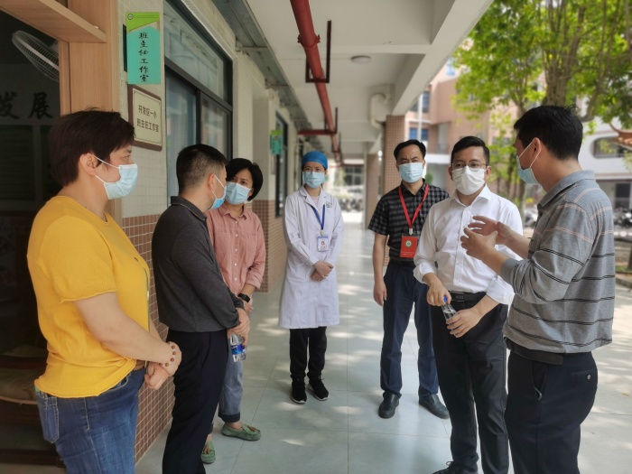 3月15日上午,中山港街道黨工委副書記胡楠、火炬區(qū)衛(wèi)計(jì)局副局長(zhǎng)張亮一行到火炬區(qū)第一小學(xué)實(shí)地調(diào)研與全面指導(dǎo)疫情防疫工作。深入一線,溫暖如春。