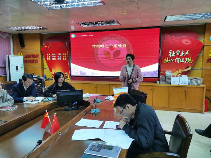 四位老師首先通過(guò)設(shè)置學(xué)生在上課期間出現(xiàn)發(fā)熱癥狀的情境,引導(dǎo)老師們?cè)谶@種情況下,作為任課老師要上前詢(xún)問(wèn)情況、安撫情緒,并立即向班主任報(bào)告。作為班主任要立刻聯(lián)系發(fā)熱學(xué)生的家長(zhǎng),向其報(bào)告具體情況,并詢(xún)問(wèn)學(xué)生近期出行情況。然后,班主任務(wù)必按既定路線將出現(xiàn)發(fā)熱癥狀的學(xué)生帶至留觀室進(jìn)行復(fù)測(cè),任課教師將其他學(xué)生帶至指定區(qū)域。最后還要報(bào)告分管校長(zhǎng),啟動(dòng)應(yīng)急預(yù)案,同時(shí),對(duì)教室進(jìn)行徹底消毒。