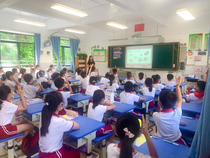 第一節(jié)課是開發(fā)區(qū)第一小學(xué)李思祺老師在二(7)班執(zhí)教的《我們的影子》。李老師的課堂,通過新穎獨特的情景模擬導(dǎo)入課堂,課堂環(huán)節(jié)環(huán)環(huán)相扣,思路清晰,教學(xué)方式多樣化,通過豐富的教具運用,探索不同材質(zhì)下影子的特點和影子的移動規(guī)律,將科學(xué)內(nèi)容融入于美術(shù)課堂,充分吸引了學(xué)生的注意力,調(diào)動起學(xué)生學(xué)習(xí)的興趣,展現(xiàn)了一節(jié)精彩紛呈的美術(shù)課。