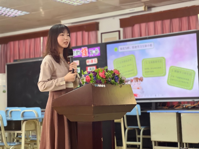 隨后,陳老師對(duì)如何提高孩子們的閱讀能力進(jìn)行經(jīng)驗(yàn)分享。陳老師從班級(jí)管理、家校協(xié)作等方面入手,引導(dǎo)老師們根據(jù)學(xué)生的年齡特點(diǎn)合理布置圖書角,利用有吸引力的圖書激發(fā)孩子們的閱讀興趣;根據(jù)語文教本選擇相對(duì)應(yīng)的繪本,拓展學(xué)生閱讀的廣度;加強(qiáng)家校溝通開展親子閱讀等活動(dòng),維護(hù)學(xué)生閱讀的深度。陳老師的分享可操作性強(qiáng),干貨滿滿,讓在場(chǎng)的老師們受益匪淺。