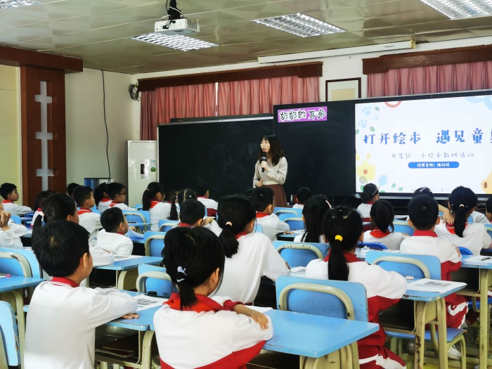 春日共研,催開一樹桃香;追夢(mèng)繪本,沉醉一路芬芳。閱讀繪本有助于激發(fā)兒童的閱讀興趣,提高兒童的語言表達(dá)能力。繪本閱讀指導(dǎo)就像一把鑰匙,能更好地幫助兒童打開閱讀繪本的大門。為了進(jìn)一步提高教師繪本閱讀教學(xué)的能力,3月10日上午,開發(fā)區(qū)第一小學(xué)開展繪本閱讀教學(xué)研討活動(dòng),本次活動(dòng)邀請(qǐng)博凱小學(xué)的陳鈺婷老師為一小老師們傳經(jīng)送寶。