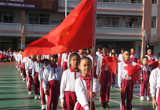 五星紅旗高高飄揚,十月的校園秋高氣爽,生機盎然。胸前的紅領(lǐng)巾格外鮮艷,映照著一個個美麗的臉頰。出隊旗,唱隊歌,六年級的老隊員為一百多名新隊員佩戴紅領(lǐng)巾,孩子們的臉上洋溢著自豪和驕傲。緊接著,少工委副主任康樂講話,他指出,希望少先隊員們積極行動起來,爭當熱愛祖國、理想遠大的好少年;爭當勤奮學習、追求上進的好少年;爭當品德優(yōu)良、團結(jié)友愛的好少年;爭當體魄強健、活潑開朗的好少年。