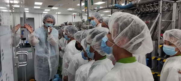 參觀生產(chǎn)車(chē)間是同學(xué)們最期待的活動(dòng)環(huán)節(jié)。同學(xué)們?cè)诠ぷ魅藛T的指導(dǎo)下,圍繞進(jìn)入車(chē)間的著裝要求、消毒要求和安全注意事項(xiàng)等進(jìn)行了詳細(xì)地學(xué)習(xí)。