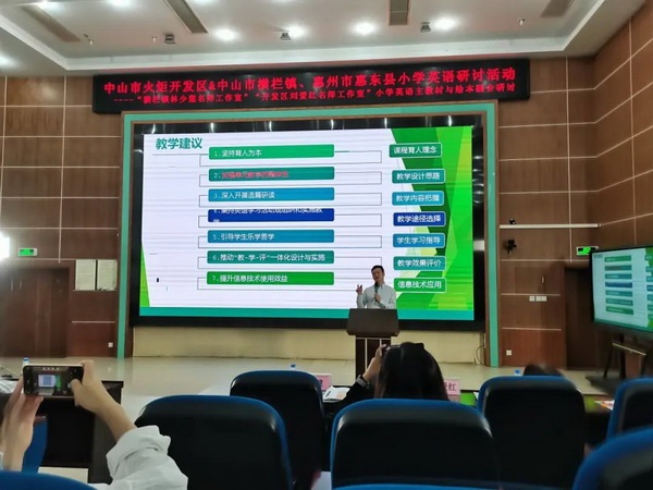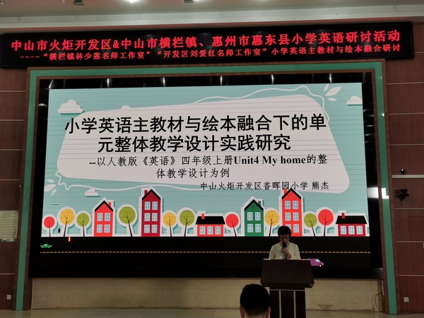 為推動(dòng)全口徑全方位融入式對(duì)口幫扶惠州基礎(chǔ)教育高質(zhì)量發(fā)展,進(jìn)一步促進(jìn)小學(xué)英語(yǔ)教師專業(yè)成長(zhǎng),提高英語(yǔ)教育教學(xué)質(zhì)量,加強(qiáng)主教材與繪本相融合的教學(xué)能力,11月15日下午,中山市開(kāi)發(fā)區(qū)組團(tuán)聯(lián)合橫欄鎮(zhèn)、惠州市惠東縣開(kāi)展小學(xué)英語(yǔ)研討活動(dòng)。活動(dòng)主會(huì)場(chǎng)設(shè)在開(kāi)發(fā)區(qū)香暉園小學(xué)報(bào)告廳,通過(guò)線上線下相結(jié)合方式舉行。中山市小學(xué)英語(yǔ)教研員辛鍵老師、惠東縣教師發(fā)展中心教研室溫玉雪老師、開(kāi)發(fā)區(qū)教育事務(wù)指導(dǎo)中心徐霞霞副校長(zhǎng)、開(kāi)發(fā)區(qū)香暉園小學(xué)歐陽(yáng)祝棣校長(zhǎng)、開(kāi)發(fā)區(qū)香暉園小學(xué)陳虹崗副校長(zhǎng)、開(kāi)發(fā)區(qū)小學(xué)英語(yǔ)中心教研組組長(zhǎng)和名師工作室主持人劉愛(ài)紅老師、橫欄鎮(zhèn)名師工作室主持人林少蓮老師,以及開(kāi)發(fā)區(qū)組團(tuán)、橫欄鎮(zhèn)、惠東縣小學(xué)英語(yǔ)教師參加了本次活動(dòng)。
