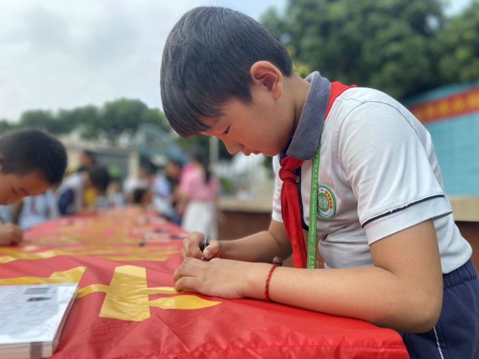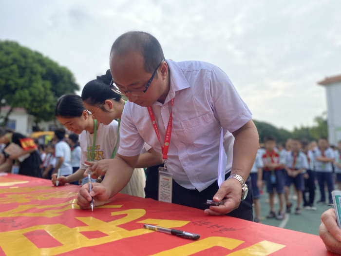 啟動(dòng)儀式的高潮在朗誦國(guó)學(xué)經(jīng)典。政教處陳七靈干事帶領(lǐng)同學(xué)們朗誦國(guó)學(xué)經(jīng)典,各個(gè)年級(jí)的同學(xué)熱情高漲,聲音嘹亮。朗誦結(jié)束后,各班主任老師帶領(lǐng)5位同學(xué)進(jìn)行簽名留念。