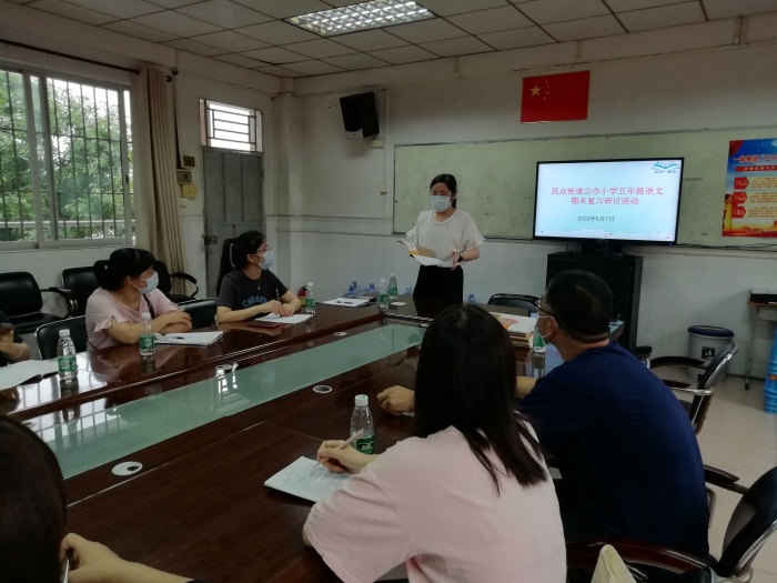 為了加強(qiáng)復(fù)習(xí)的研討和交流,提高復(fù)習(xí)課的教學(xué)效果,2022年6月7日下午,民眾街道公辦小學(xué)五年級(jí)語文集體備課組在接源小學(xué)開展了復(fù)習(xí)研討活動(dòng),來自民眾街道各個(gè)公辦小學(xué)的五年級(jí)語文老師參與了這次活動(dòng)。研討活動(dòng)由街道小學(xué)五年級(jí)語文攻堅(jiān)備課組組長郭蕓谷老師主持。