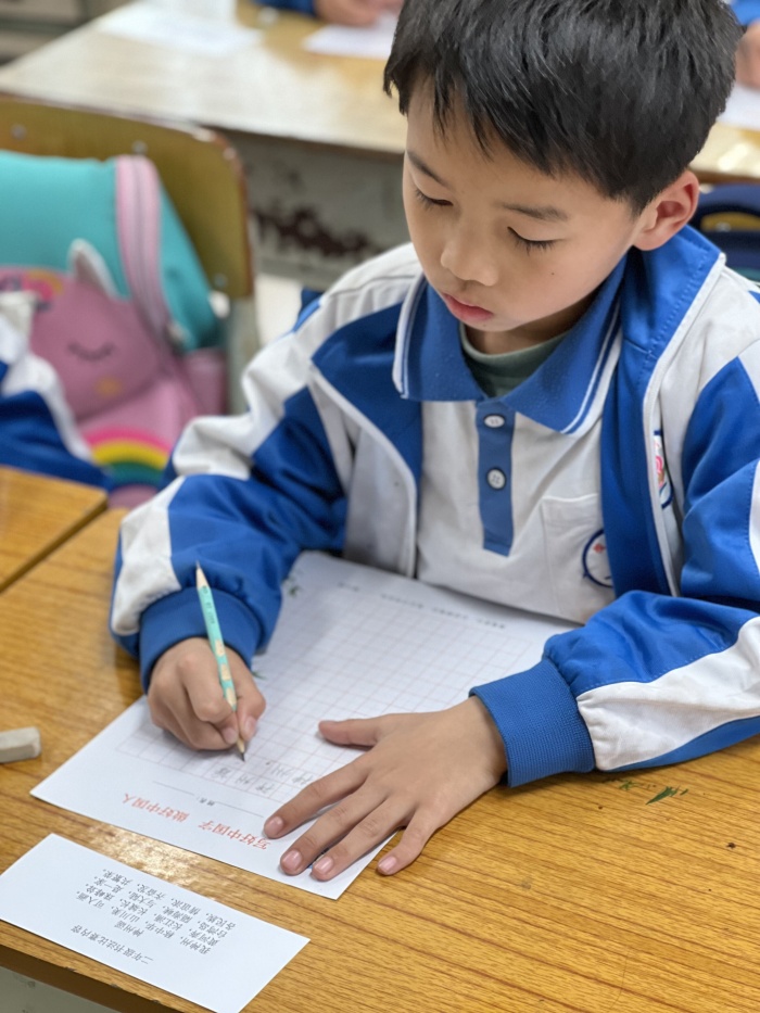 當天下午2點,活動以班級為單位在各班課室舉行。比賽中,同學們個個精神飽滿,大家用心書寫著一筆一劃,盡其所能地展示自身書法的才能。書法比賽給了同學們展示自己的舞臺,驗證了同學們的實力和水平,更加深了同學們對硬筆書法藝術(shù)的執(zhí)著追求。為了給孩子們做好楷模,全體老師也紛紛揮筆寫下自己滿意的作品。