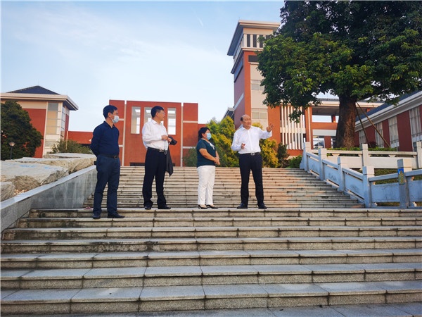 11月6日下午放學(xué)時(shí)間,在沒(méi)有任何通知的情況下,中山市教育和體育局彭曉新局長(zhǎng)、黎國(guó)喜副局長(zhǎng)、教育招生考試中心陶國(guó)文主任走進(jìn)翠亨小學(xué),對(duì)翠亨小學(xué)進(jìn)行疫情防控工作的檢查。