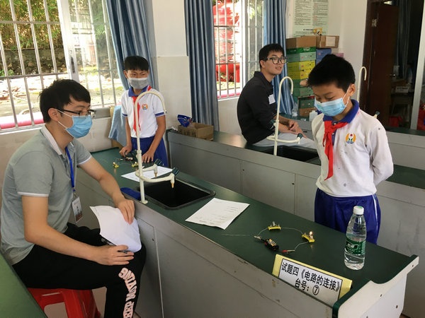 5月17日上午8:30,各個(gè)學(xué)校派出的監(jiān)考老師已到位。據(jù)悉,此次實(shí)驗(yàn)操作考核的題目有《用天平測(cè)量物體的質(zhì)量》《測(cè)量不規(guī)則石塊的體積》《測(cè)量液體的溫度》《電路的連接》《聲音的產(chǎn)生》和《讓氣球膨脹起來(lái)》??碱}模塊分為口述實(shí)驗(yàn)器材、方法與步驟、口述實(shí)驗(yàn)結(jié)論、整理實(shí)驗(yàn)器材等。在考核過(guò)程中,橫門小學(xué)的考生們禮貌從容,操作規(guī)范,認(rèn)真實(shí)驗(yàn),贏得監(jiān)考老師們的一致好評(píng)。