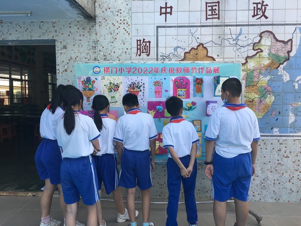 由于今年的教師節(jié)剛好在星期六,所以橫門小學(xué)的教師節(jié)慶?;顒?dòng)在9月9日舉行。早上,少先隊(duì)員們?cè)缭绲刈龊脺?zhǔn)備,拿著自己親手制作的賀卡,迎接老師的到來,送上最親切的祝?!袄蠋?,祝您節(jié)日快樂”!一年級(jí)的小朋友剛?cè)雽W(xué)不久,也通過自己的繪畫,向老師傳遞著節(jié)日的祝福。