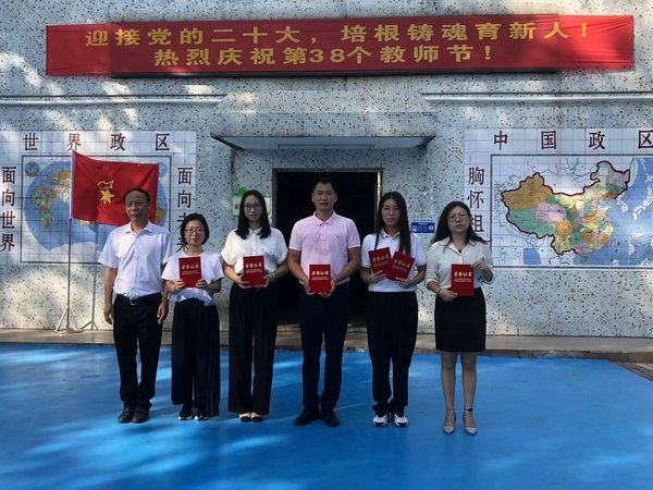 2022年9月9日上午,全體師生精神抖擻地匯聚在學(xué)校禮堂前面。學(xué)校黨支部書記、少工委主任林國信校長進(jìn)行了熱情洋溢的致詞,向辛勤耕耘的老師們致以節(jié)日的祝賀和衷心的感謝,勉勵(lì)教師們認(rèn)真學(xué)習(xí)貫徹習(xí)近平總書記重要講話精神,全面貫徹黨的教育方針,做有理想信念、有道德情操、有扎實(shí)學(xué)識(shí)、有仁愛之心的“四有”好老師。橫門小學(xué)有一批優(yōu)秀教師,他們師德高尚,愛生如子,甘于奉獻(xiàn),治學(xué)有方,獲得市、街道優(yōu)秀教師等榮譽(yù)稱號(hào),林校長介紹了他們的先進(jìn)事跡,并為他們進(jìn)行頒獎(jiǎng)。