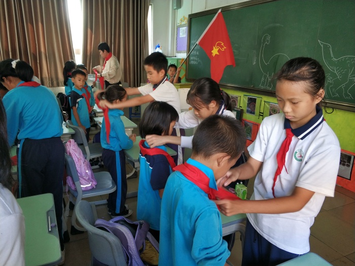 紅領(lǐng)巾是少先隊的標(biāo)志,代表著紅旗的一角,是用無數(shù)革命先烈的鮮血染成的。良都小學(xué)少先隊大隊認(rèn)真學(xué)習(xí)《少先隊改革方案》內(nèi)容,組織隊干對低年級進(jìn)行少先隊禮儀培訓(xùn),教低年級隊員系紅領(lǐng)巾。此外,良都小學(xué)少先大隊還開展了 “我是節(jié)約小能手”月餅盒回收活動,響應(yīng)黨“厲行節(jié)約,反對浪費(fèi)”的號召。各中隊輔導(dǎo)員則組織隊員開展“我和隊旗合個影”活動,向隊旗表達(dá)自己的敬意。