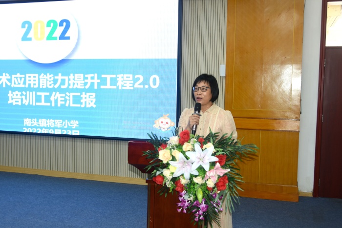 接著東鳳鎮(zhèn)民和小學歐雪梅副校長和南頭鎮(zhèn)將軍小學胡映芬校長作為代表依次匯報教師信息技術應用能力提升工程2.0整校推進工作。