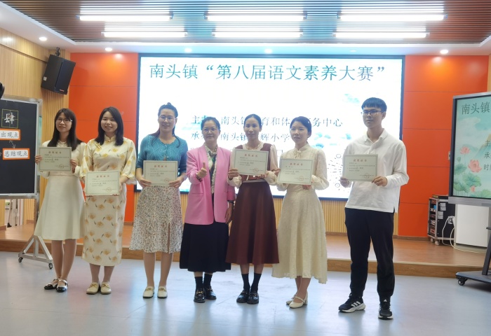 比賽結束后,南頭鎮(zhèn)教育和體育事務中心梁柳珍老師對這次比賽進行了點評。她對參賽選手的表現(xiàn)給予了充分的肯定,也給青年教師今后的專業(yè)發(fā)展指明了新方向。接著,梁老師做活動總結,同時為獲獎老師頒發(fā)獲獎證書并合影留念。