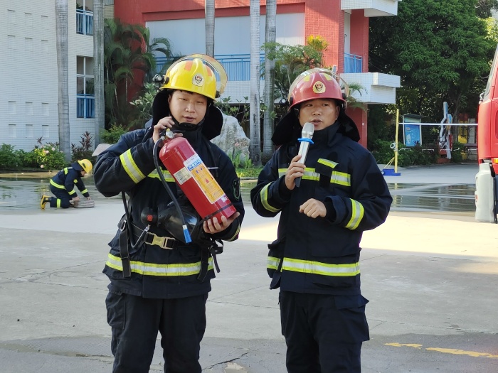 接著,南頭消防大隊(duì)的消防隊(duì)員結(jié)合校園消防工作的特點(diǎn),用通俗易懂的語言為師生們講解了學(xué)校內(nèi)如何預(yù)防火災(zāi)、遇到緊急情況時應(yīng)該如何處理、逃生等與同學(xué)們?nèi)粘W(xué)習(xí)生活密切相關(guān)的消防知識。隨后,全校師生觀看了消防滅火演練以及高空營救的演習(xí)。其中,消防隊(duì)員就如何正確使用滅火器進(jìn)行了現(xiàn)場操作示范,并隨機(jī)抽查幾名教師代表親身體驗(yàn)了滅火器的正確使用方法,通過“手把手”的交流學(xué)習(xí),有效提高了師生撲救初期火災(zāi)的能力。