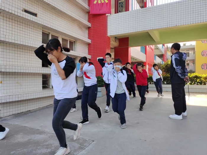 下午第一節(jié)課后,隨著校園內(nèi)安全警報(bào)的響起,演練開始了。老師和學(xué)生迅速作出了反應(yīng),各班老師迅速按緊急預(yù)案的疏散線路帶領(lǐng)孩子彎著腰,一只手捂住口鼻,一只手捂住頭,快速撤離教學(xué)樓,疏散到指定的空曠位置上。整個過程嚴(yán)肅認(rèn)真、井然有序,用時一分多鐘。