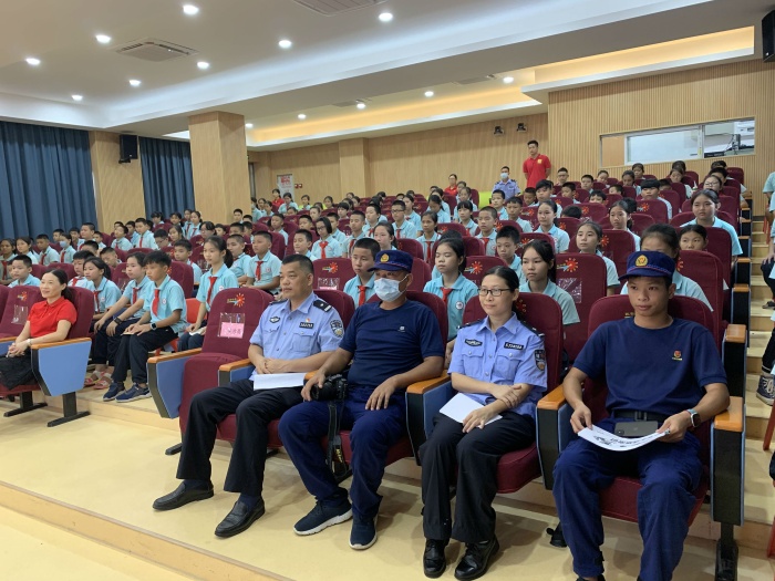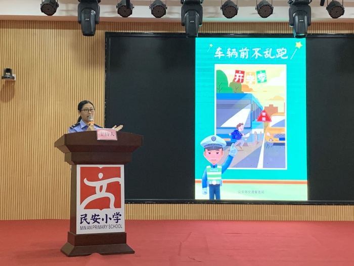 此次開學(xué)典禮得到了南頭鎮(zhèn)關(guān)心下一代工作委員會(huì)的支持,南頭鎮(zhèn)關(guān)工委黃祺宗副主任、梁細(xì)言委員、何華嬌委員出席了本次開學(xué)典禮。本次開學(xué)典禮第一項(xiàng)內(nèi)容,是由黃祺宗副主任對(duì)全校師生進(jìn)行講話。黃爺爺勉勵(lì)孩子們?cè)谛碌膶W(xué)期要以最積極的狀態(tài)迎接新的學(xué)習(xí)和挑戰(zhàn),同時(shí)要把老師們的教育內(nèi)化于心,外化于行。接下來,是由民安小學(xué)法制副校長(zhǎng)錢國(guó)飛警官給全體師生上了一堂生動(dòng)的法制課,有效地提高了師生的法制意識(shí)。開學(xué)典禮第三項(xiàng)內(nèi)容,則是由南頭鎮(zhèn)消防中隊(duì)的羅俊昌消防員為全體師生介紹火災(zāi)的預(yù)防和應(yīng)急處理等消防安全知識(shí)。而后,南頭鎮(zhèn)交警大隊(duì)的鐘艷芬警官就學(xué)生的出行交通安全做了詳細(xì)的介紹。