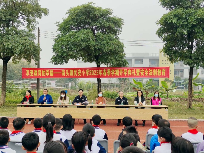 春風(fēng)和煦,草長(zhǎng)鶯飛。沉寂了一個(gè)寒假的校園又被同學(xué)們的歡笑聲打破,帶著新的心情、新的希望、新的目標(biāo),又迎來(lái)了新的學(xué)期。2023年2月6日上午,南頭鎮(zhèn)民安小學(xué)舉行了2023年春季新學(xué)期開(kāi)學(xué)典禮暨安全法制教育。