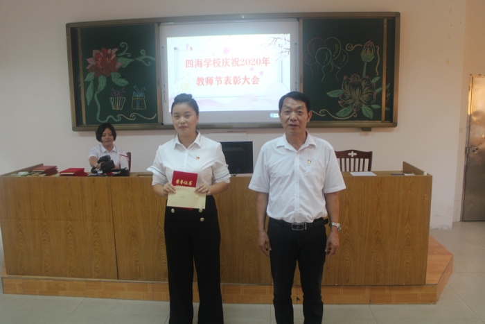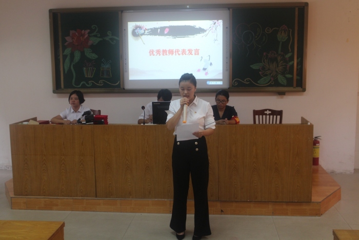 王校長(zhǎng)在會(huì)上公布了學(xué)校獲得市、鎮(zhèn)、校三級(jí)優(yōu)秀教師的名單,后校長(zhǎng)為這些老師頒發(fā)了榮譽(yù)證書(shū)。孫主任作為優(yōu)秀教師的代表發(fā)表演講。她勉勵(lì)大家用靈動(dòng)的智慧引導(dǎo)學(xué)生,用高尚的人格感染學(xué)生,用文明的禮儀影響學(xué)生,用博大的胸懷愛(ài)護(hù)學(xué)生,爭(zhēng)取多出成績(jī),出好成績(jī),譜寫(xiě)四海學(xué)校更加輝煌的明天!