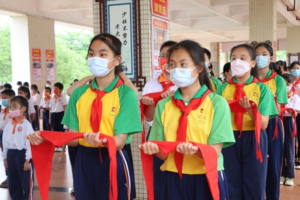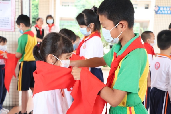 星星火炬,照我前行。本次入隊(duì)儀式為學(xué)校少先隊(duì)注入了新鮮血液,壯大了少先隊(duì)隊(duì)伍。相信每個(gè)隊(duì)員將會銘記“我們是共產(chǎn)主義接班人”的錚錚誓言,牢記先輩們的犧牲和付出,加倍珍惜來之不易的幸福生活,努力學(xué)習(xí),秉持少先隊(duì)員的優(yōu)良作風(fēng),用實(shí)際的行動詮釋“請黨放心 強(qiáng)國有我”的決心與擔(dān)當(dāng),為少先隊(duì)組織增添光彩!