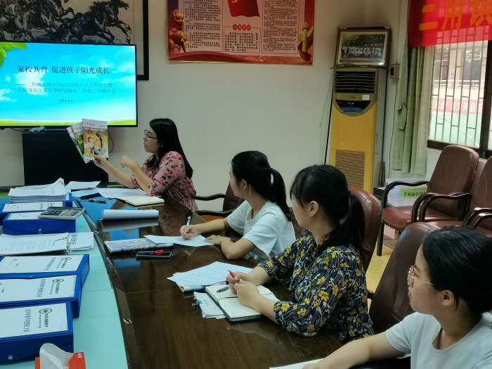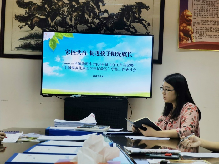 為促進(jìn)學(xué)校全國(guó)規(guī)范化家長(zhǎng)學(xué)校試驗(yàn)區(qū)建設(shè),充分發(fā)揮班主任在家庭教育中的重要作用,三角鎮(zhèn)光明小學(xué)于6月16日召開(kāi)建設(shè)全國(guó)規(guī)范化家長(zhǎng)學(xué)校實(shí)踐活動(dòng)實(shí)驗(yàn)區(qū)示范校領(lǐng)導(dǎo)小組工作會(huì)議和班主任德育研討會(huì)議。會(huì)議由德育主任林秋影主持,全體班主任參加會(huì)議。