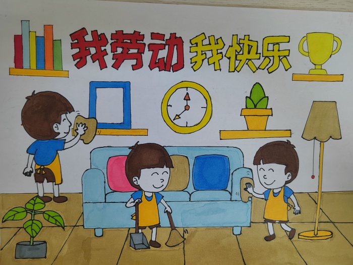 一到三年級的同學(xué)繪畫作品立意新穎、用最絢麗的圖案、最生動的語言文字、最真實的情感,展示了“勞動最光榮”的生活態(tài)度,同時,他們表示要以實際行動來熱愛勞動,學(xué)會感恩,向身邊的勞動者學(xué)習(xí)致敬。